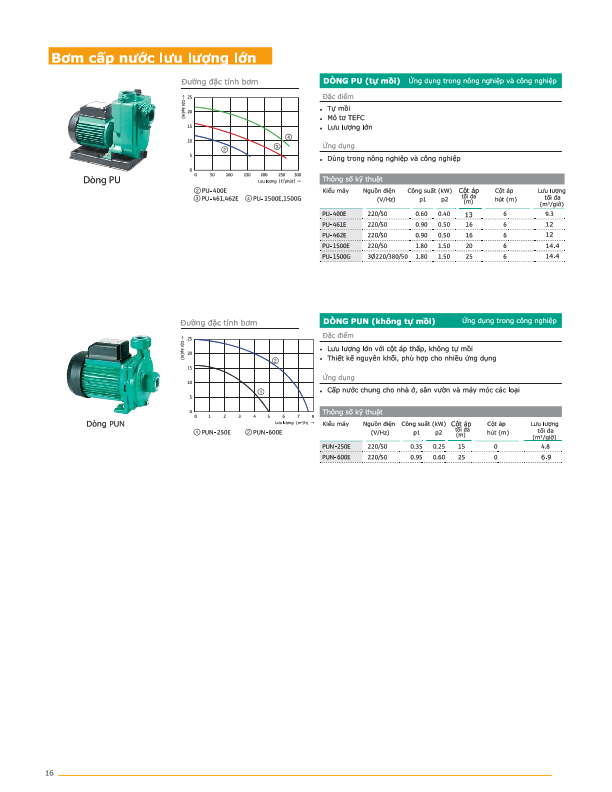 PU-462E Bơm Cấp nước Lưu Lượng Lớn -Tự Mồi